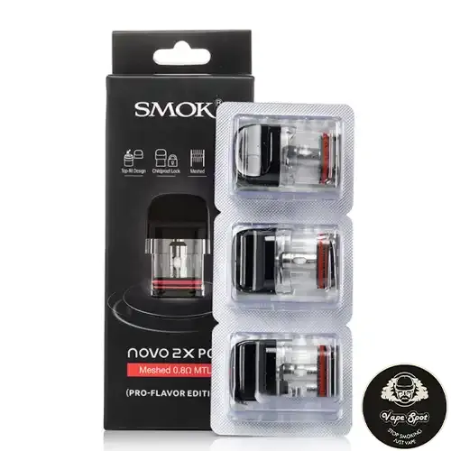 Shop SMOK Novo 2X Pods (3-Pack), featuring a 2mL capacity, integrated 0.9ohm Meshed MTL Coil, and is compatible with all Novo and Novo 2 variants.